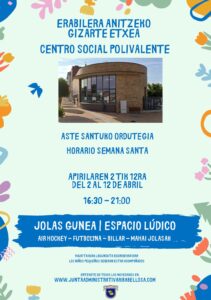 PRÓXIMOS EVENTOS Aviso No hay eventos programados. NOVEDADES ¡ESTE PUENTE ABRIMOS!Del 2 al 12 de Abril en horario de 16:30-21:00 Horario de la Junta Administrativa De Lunes a Viernes de 10:00 a 12:30Telefono: 945 355 003 Horario del Centro Social De Lunes a Viernes de 17:00 a 20:00Telefono: 945 355 170